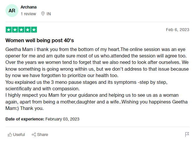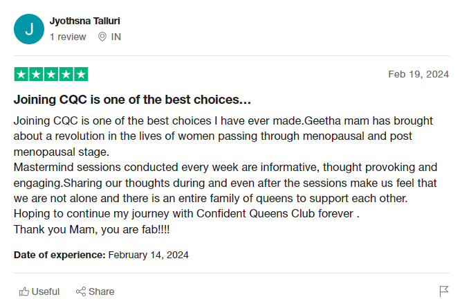Geetha has created a community for women above 40 who are going through perimenopause and menopause phase. The community name is “CONFIDENT QUEEN CLUB.”
